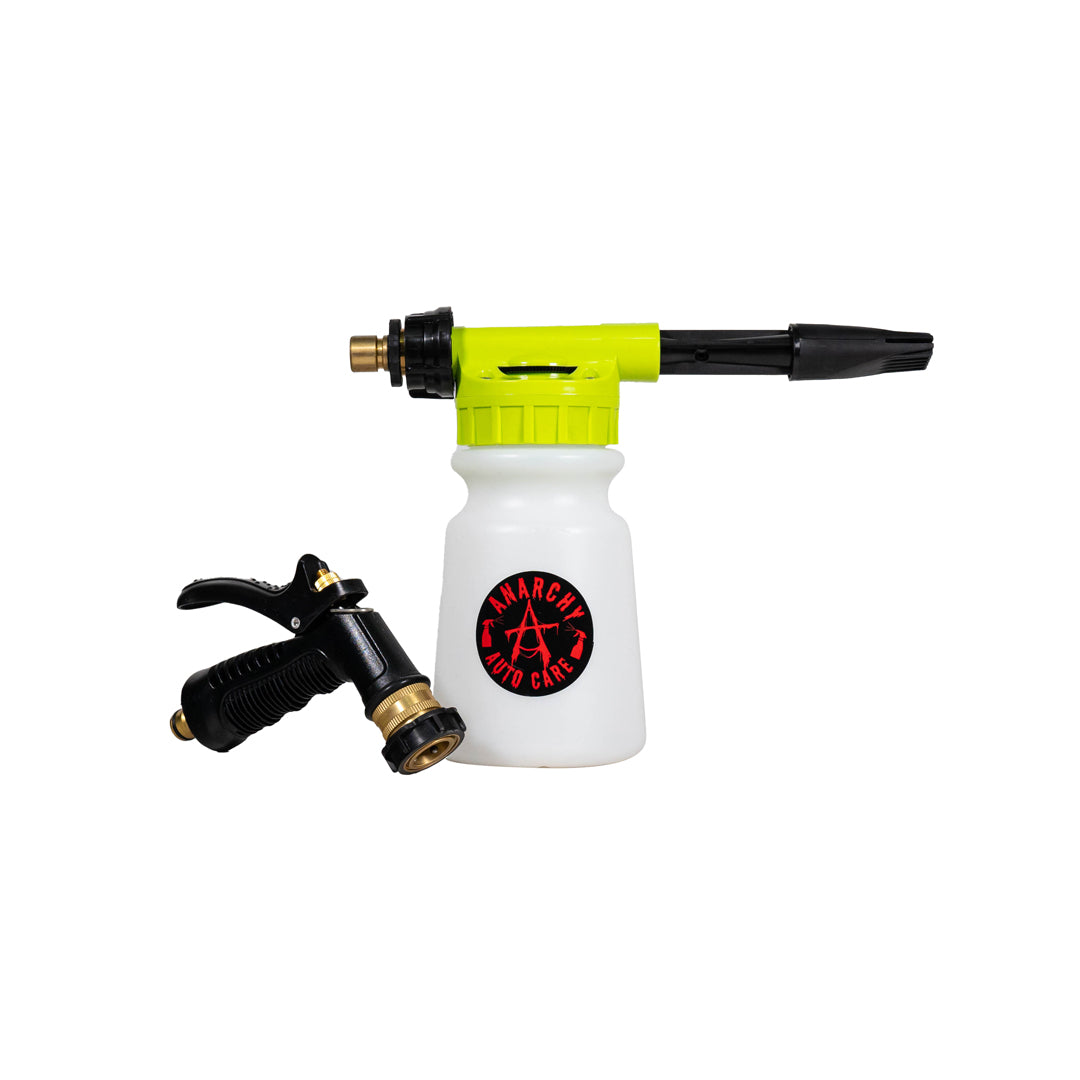 Our Anarchy Garson Hose Snow Foam Cannon revolutionizes the way you clean your car, 4wd or boat. When combined with your Garden hose water system our Snow Foam Cannon delivers a thick layer of foam. Our Snow Foam detergent is engineered to adhere securely to your paint surface, carefully softens and disintegrates dirt, grime and other road debris.